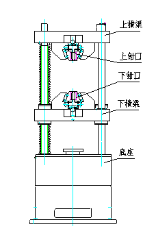 下橫梁升降電機(jī)經(jīng)減速器、鏈傳動機(jī)構(gòu)、絲杠副傳動,實(shí)現(xiàn)拉伸、壓縮空間的調(diào)整;注:絲杠不動,螺母旋轉(zhuǎn),確保設(shè)置在運(yùn)轉(zhuǎn)中的幾何精度